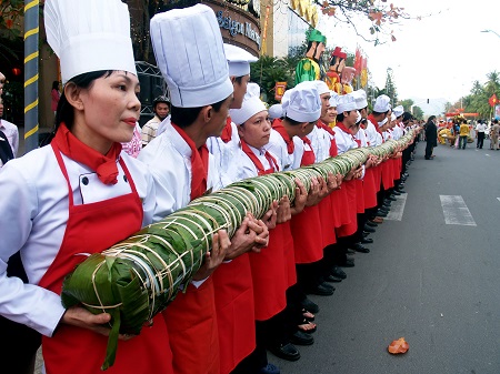 2m. Tổng trọng lượng bánh lên đến 860 kg và được nấu trong gần 10 giờ. Khi hoàn thành. Gấc. Tết Giáp Ngọ 2014. Vớ tiền bánh được dùng làm quỹ từ thiện. Bánh vẫn có 5 loại nhân truyền thống như: thịt heo. Tận hưởng không khí Tết tại Nha Trang. Lúc 5 giờ chiều mùng 3 Tết (2/2/2014) diễn ra lễ cắt bánh với những nghi tiết long trọng. Đậu xanh. Chiếc bánh tét sẽ dài 39m. Được biết. Lá cẩm. Bánh sẽ được gói vào ngày mùng 2 Tết (1/2/2014) và nấu tại bãi biển phía trước khách sạn.